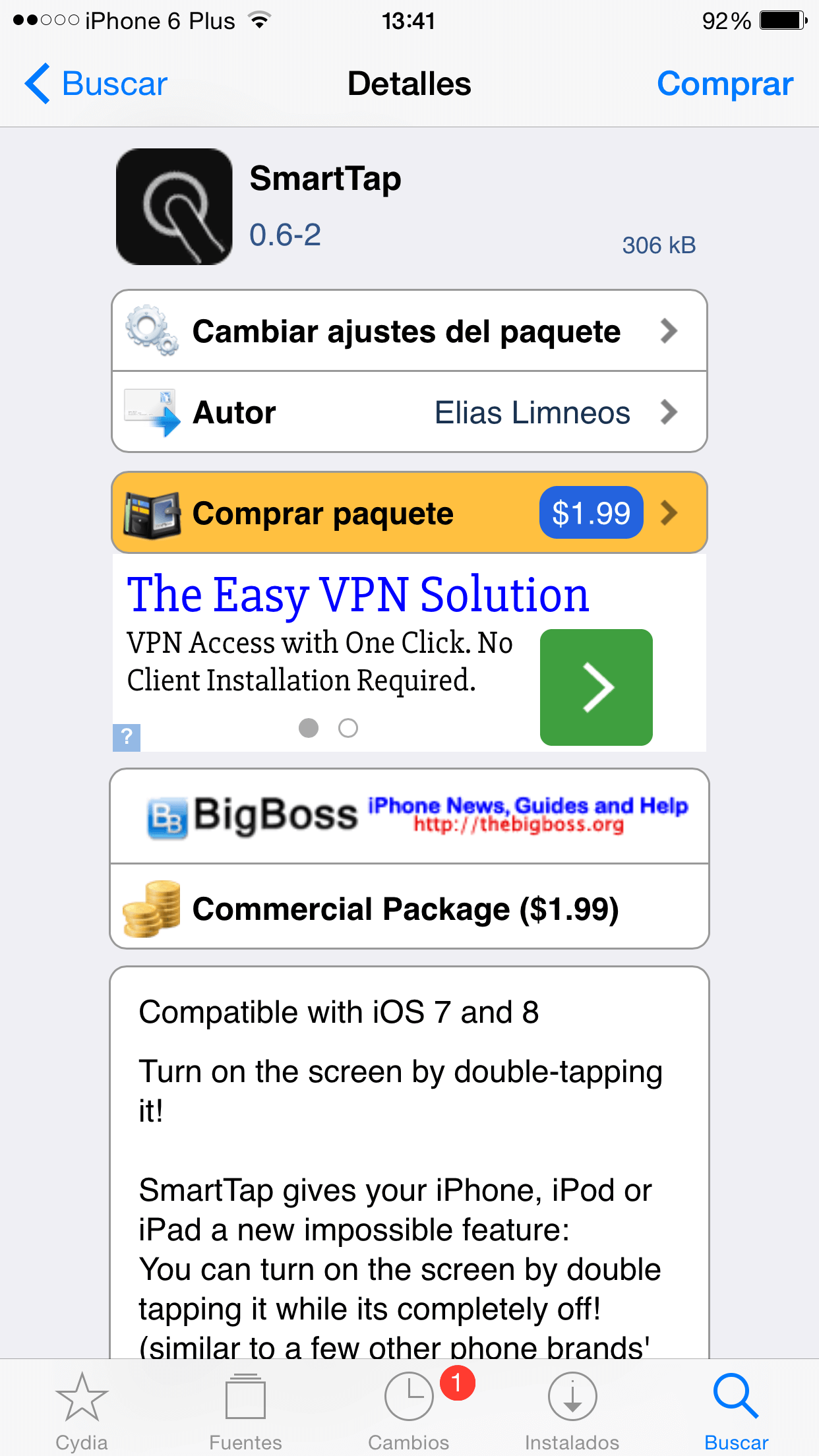 SmartTap tiene un costo de $1.99 dólares en el repositorio de BigBoss de Cydia, es compatible con el iPad, el iPod y el iPhone desde iOS 7 hasta iOS 8. SmartTap no permitirá, prender la pantalla o bloquear nuestro dispositivo cuando demos doble tap en la pantalla, podemos también desbloquear nuestro dispositivo deslizando desde la parte de abajo hacia arriba, también podemos abrir alguna aplicación si deslizamos desde arriba hacia abajo, eso funcionaria automáticamente si no tenemos una contraseña en nuestro dispositivo, sino tendremos que poner el código o usar el TouchID pero siguen siendo muy buenas funciones. Para que entiendan mejor el funcionamiento de este tweak es mejor que vean el video.