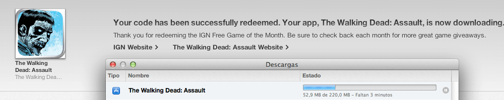 Para los que no conocen «The Walking Dead: Assault» es un juego de estrategia dedicado a la famosa serie de televisión «The Walking Dead». El juego The Walking Dead: Asalto un precio habitual en la App Store de $2.99, pero gracias a la famosa y renombrada página web IGN, se puede obtener un código promocional que nos permitirá descargar dicho juego de forma gratuita.