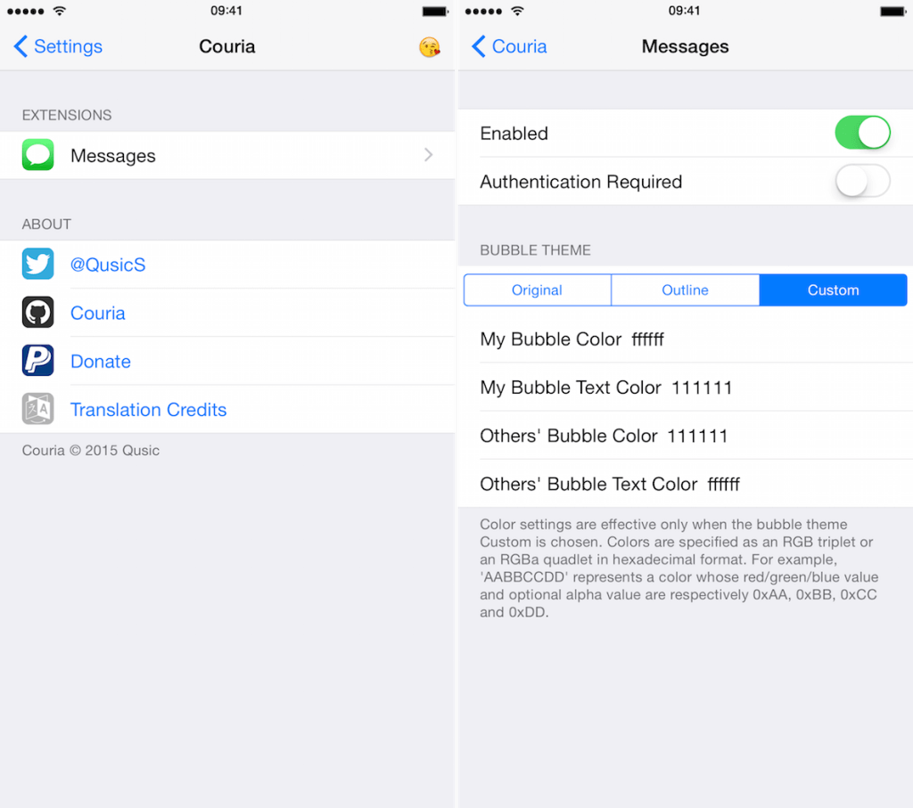 Desafortunadamente, este tweak aun se encuentra en una versión beta los cual presenta cierta fallas, especialmente en la parte de personalización dado que presenta fallas, en algunas ocasiones el sistema no parece responder a la personalización que se le esta asignando, de igual modo pasa al momento de personalizar las burbujas de los textos. Otro punto que falta por mejorar es que la modificación de las burbujas se realizan a través de código HEX en lugar de una barra RGB deslizable que te permita seleccionar, algo que sin duda para algunos no será nada fácil realizar las modificaciones.