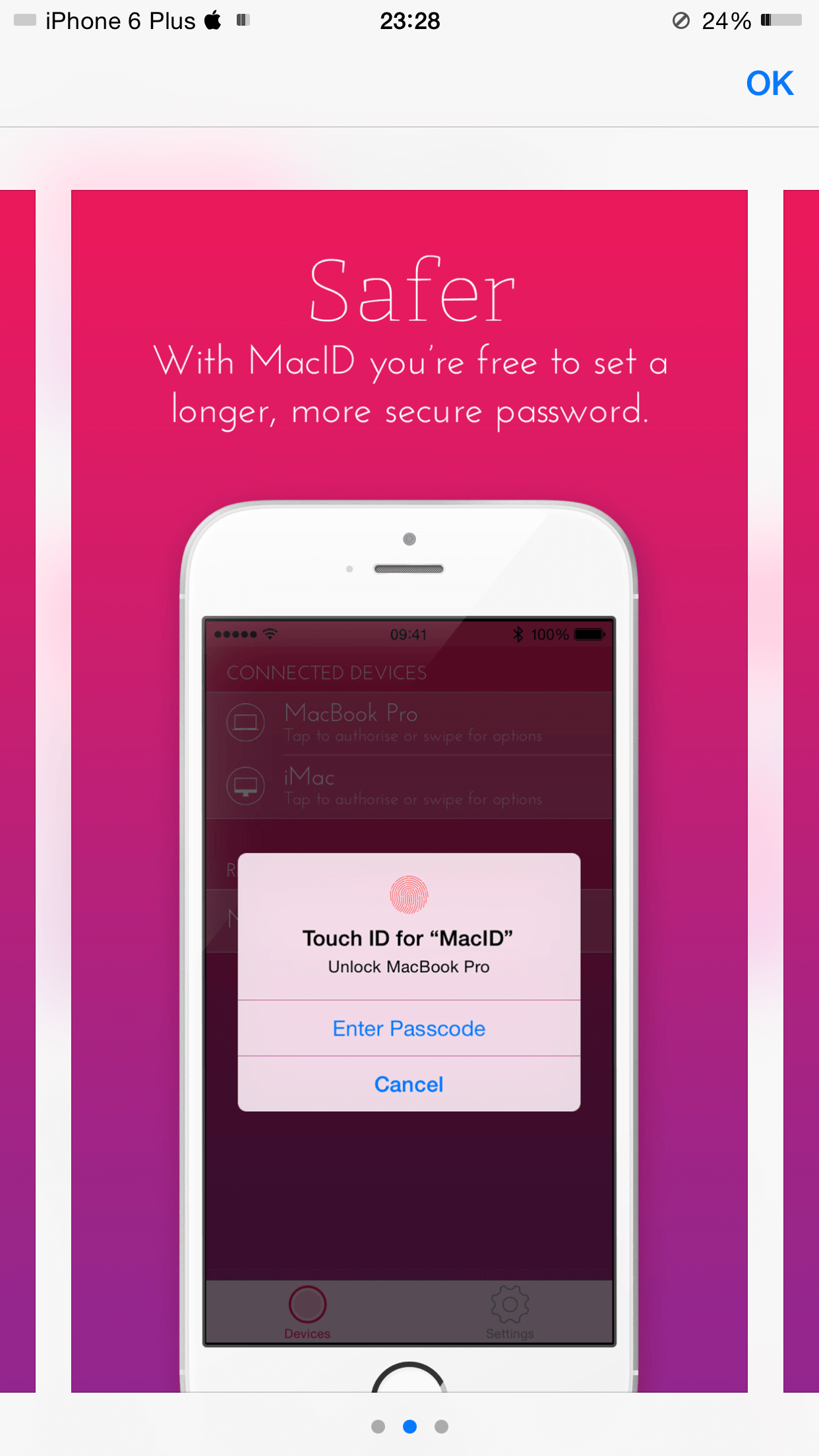 Para las personas que tengan un iPod5, iPhone 4s, iPhone 5c, iPhone 5 o un iPad sin Touch ID pues no se preocupen por que también podrás usar MacID pero en este caso podrás ingresar la contraseña desde su dispositivo. Ademas podemos usar notificaciones interactivas de iOS 8 para no estar a fuerza en la aplicación.