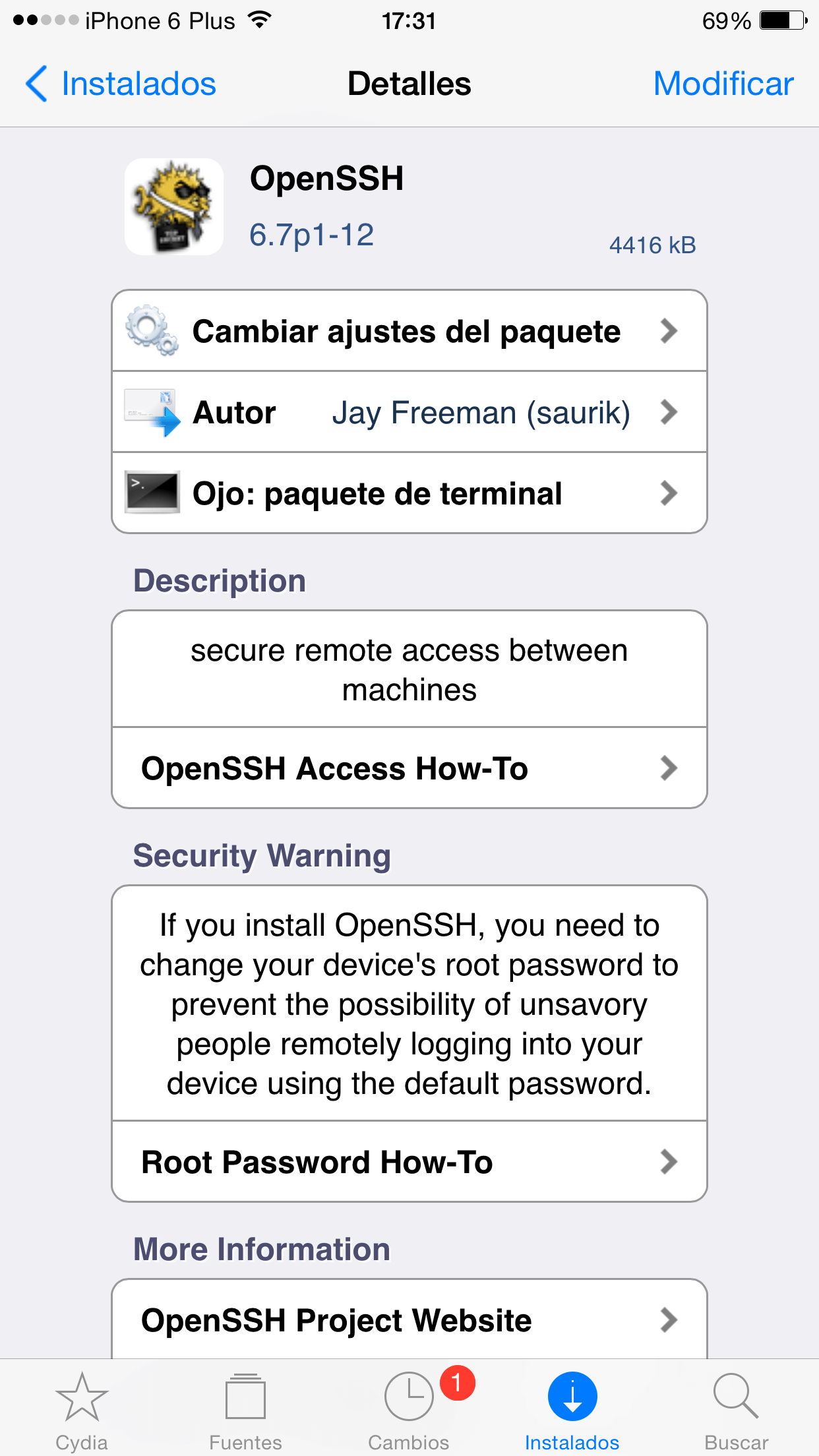 Después tendrán que descargar un tweak muy importante ya que nos servirá para instalar los juegos en nuestro dispositivo, el tweak se llama OpenSSH y es totalmente gratis.