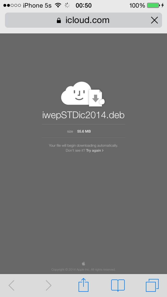 Los diccionarios los podemos descargar e instalar en nuestro dispositivo usando nuestra Mac o PC pero les recomiendo que sigan mis paso ya que puede ser mas fácil y rápido. Van a necesitar la aplicación iFile que también podemos encontrar en Cydia, esa aplicación nos permite entrar a los archivos internos de nuestro dispositivo, añadir y quitar cosas del mismo. Cada diccionario pesa un poco mas de 50MB. Lo descargamos desde nuestra Mac o PC y nos vamos a enviar por mail usando iCloud a nosotros mismo el archivo descargado con terminación «.deb» y abriremos el correo con el archivo para que nos mande a Safari y así poder abrir el archivo en iFile y una vez en iFile nos saldrá varias opciones y tiene que seleccionar la que dice «Instalador» para que instale el diccionario, sigan los pasos del video para que quede mas claro.
