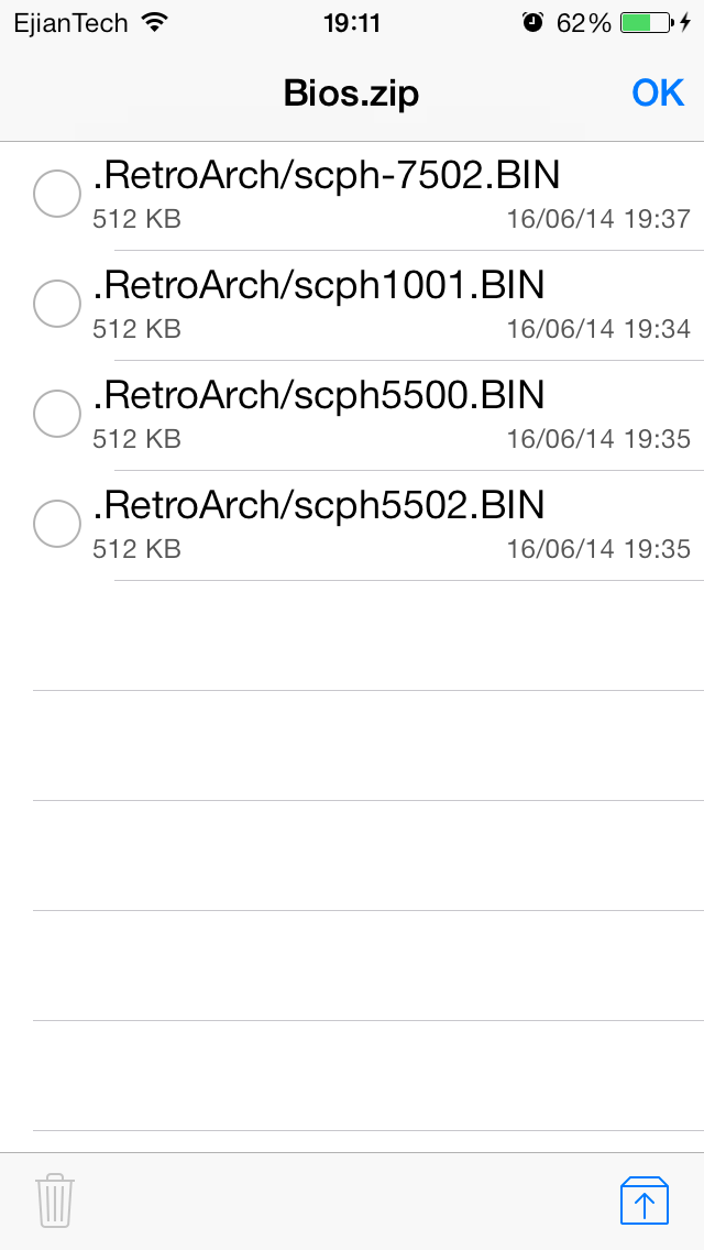 vamos a ir a la ruta donde subimos el archivo bios.zip (/var/mobile/documents/) y le daremos un tap con nuestro dedo para que nos salga un sub menu.
