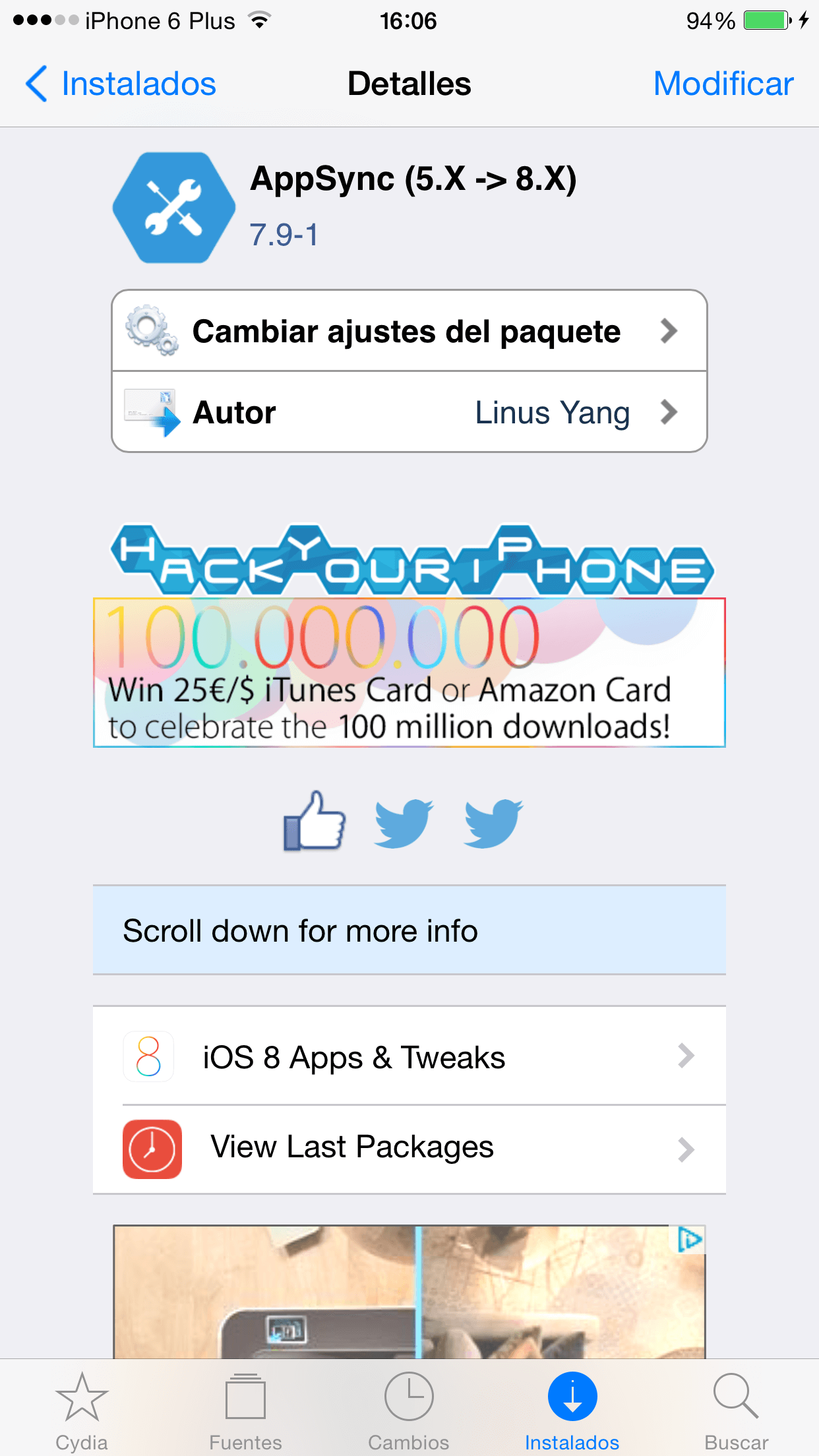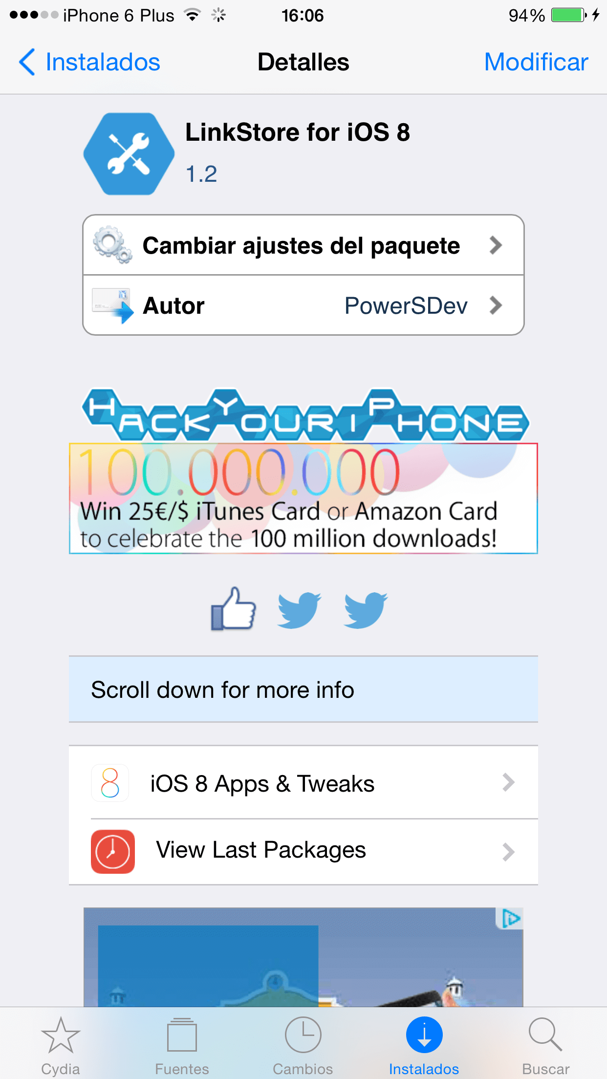 Es muy importante descargar e instalar el tweak de AppSync para iOS 8 y también descargar el tweak de LinkStore para iOS 8 y esto también funciona en iOS 7.