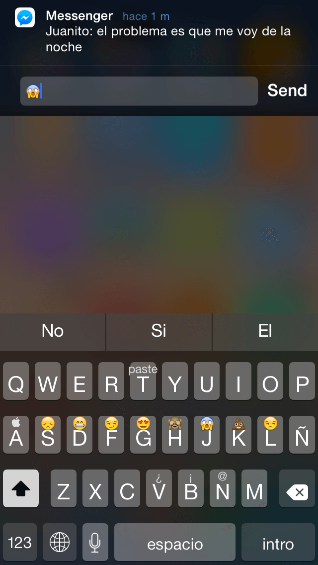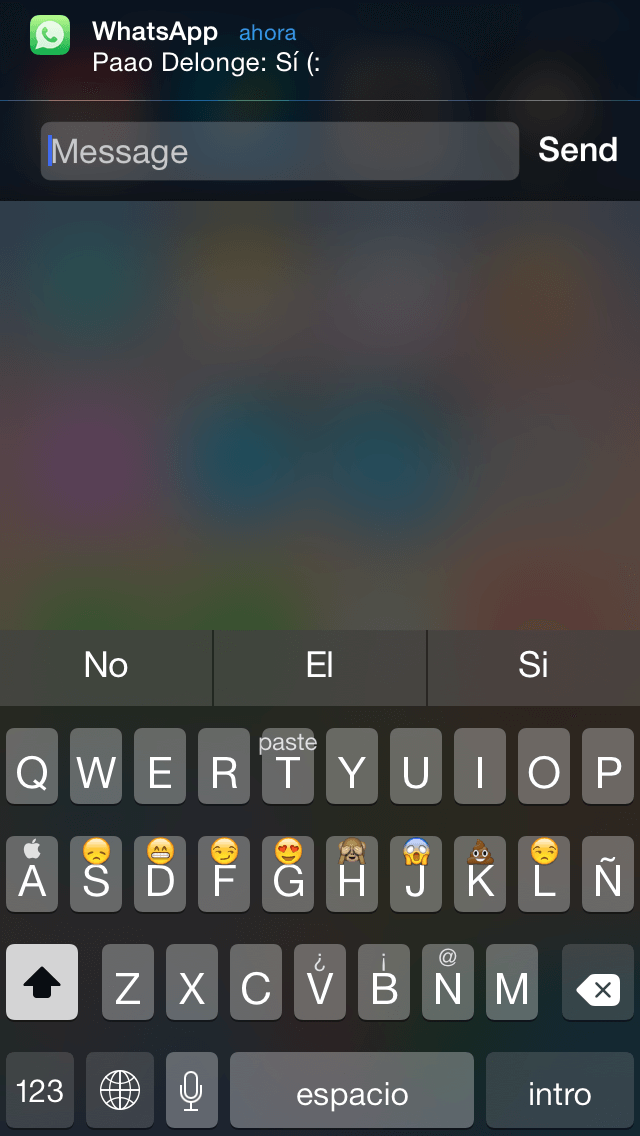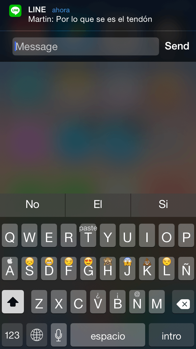 Esta función no esta disponible en todas las aplicaciones y mucho menos en aplicaciones de mensajería instantánea como WhatsApp, Line o Facebook Messenger. Sin embargo la aplicación de Viber ya ha sido actualizada con estas notificaciones interactivas y Facebook messenger tiene algo parecido pero si queremos responder el mensaje tendremos que entrar forzosamente a la aplicación. Esto no e culpa de Apple o iOS 8 sino de los developers de las aplicaciones que no han actualizado totalmente sus aplicaciones para iOS 8.