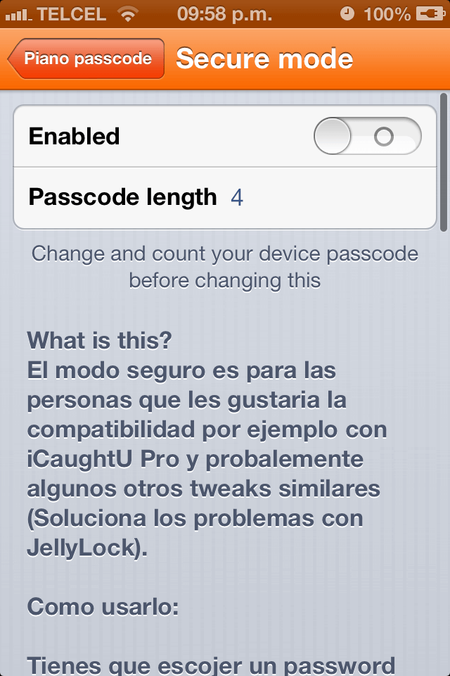 - Si accidentalmente olvidas el código del piano, reinicia tu dispositivo y presiona el boton de subir volumen para iniciar el dispositivo sin ningun tweak activado. Esto te permitira entrar en tu iDevice.