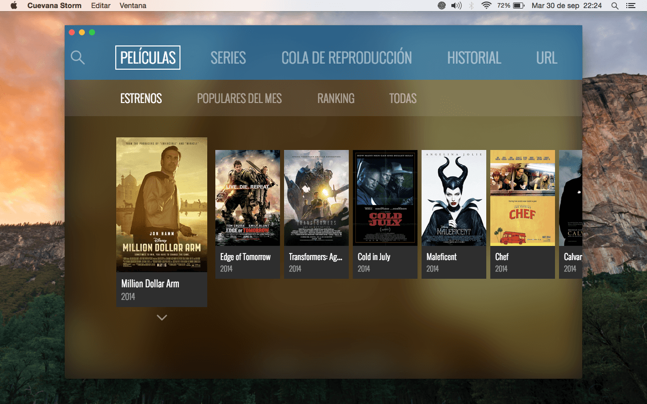 Cuevana Storm es otra aplicación gratuita que podemos descargar directamente desde la pagina oficial dando clic aquí. Ademas es compatible con OS X, Windows y Linux. Cuenta con un gran repertorio de las ultimas películas y series de tv lanzadas a nivel mundial en blu-ray, por lo tanto la calidad de video será muy buena siendo de 720p y también en 1080p. El audio también será de muy buena calidad. Algo también muy bueno es que podemos usar nuestro smartphone como control remoto.