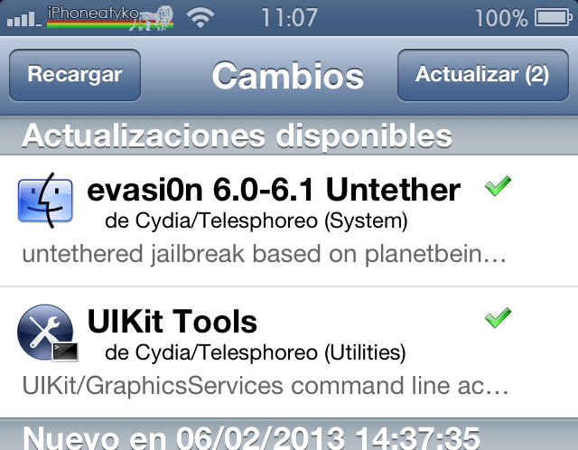 Para solucionar nuestro problema vamos a abrir Cydia y vamos a tener 2 actualizaciones disponibles
